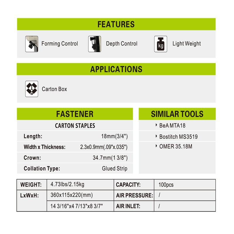 MEITE Professional Carton Box stapler machine nailer for carton box closing Gun HB3518 (manual type)