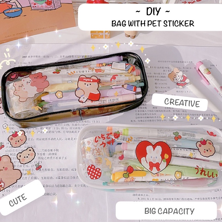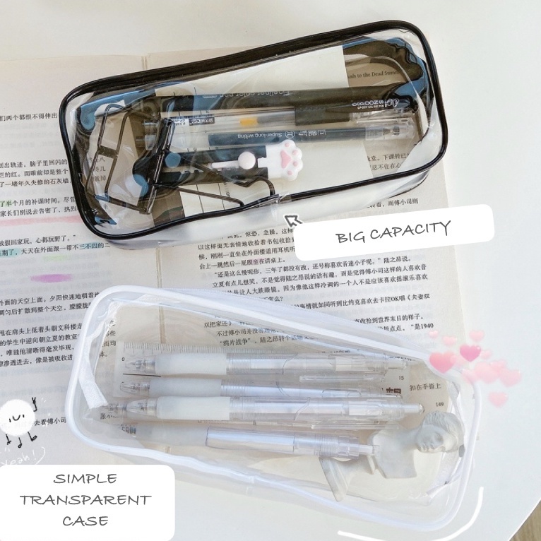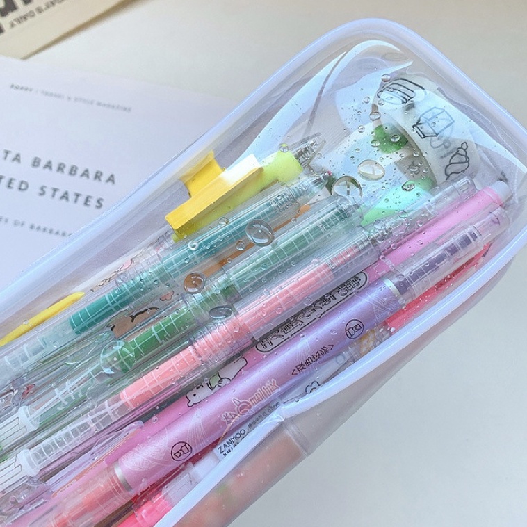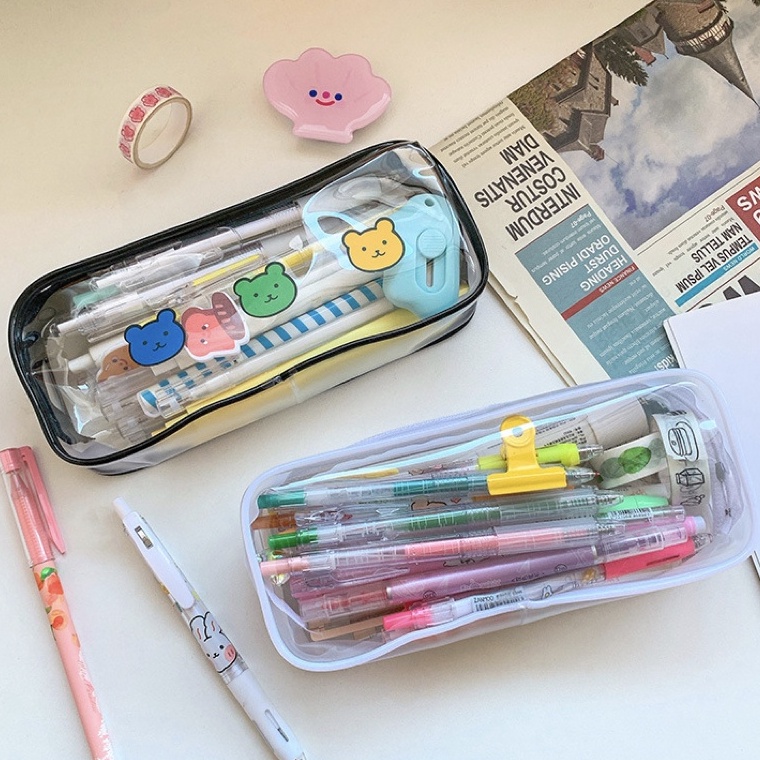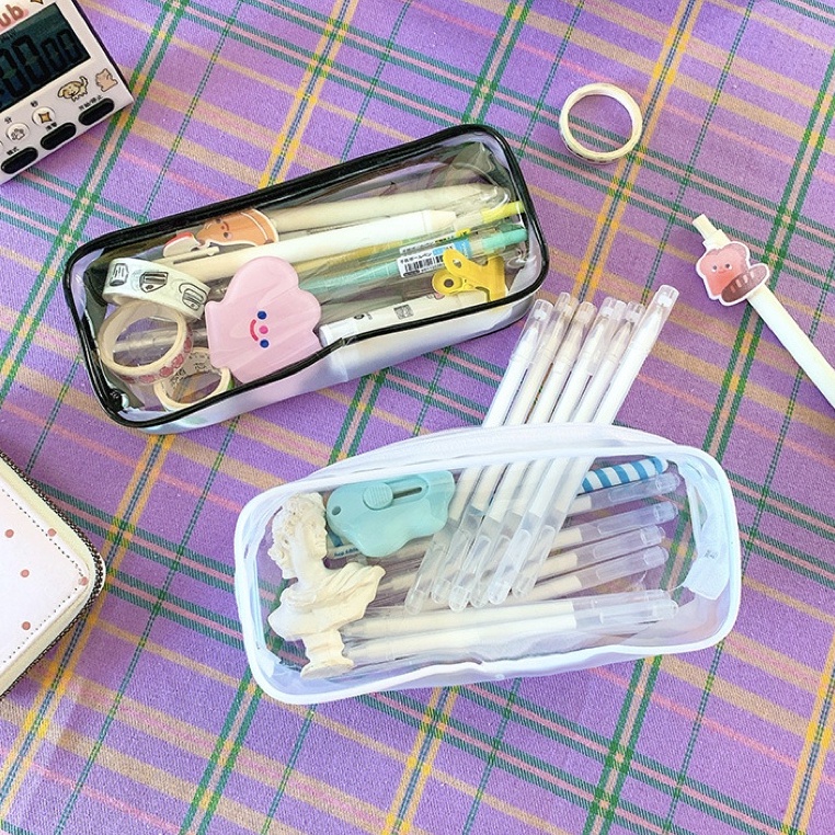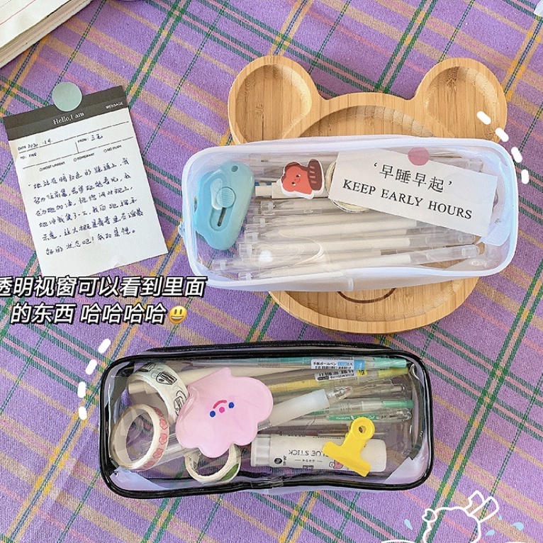 MEME Clear Pencil Bag Transparent PVC Zipper Pouch Student Pencil Case Large Capacity Portable