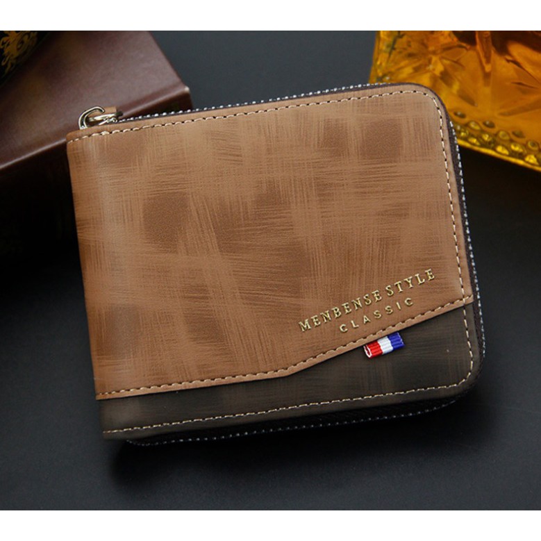 MENBENSE Man Wallet Short Wallet Zip Wallet Card Wallet