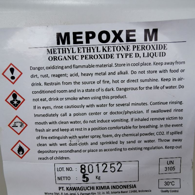 MEPOXE FIBREGLASS MEKP RESIN HARDENER / CATALYST / ACID FIBER GAM- 5kg(SHIP TO WEST MALAYSIA ONLY)
