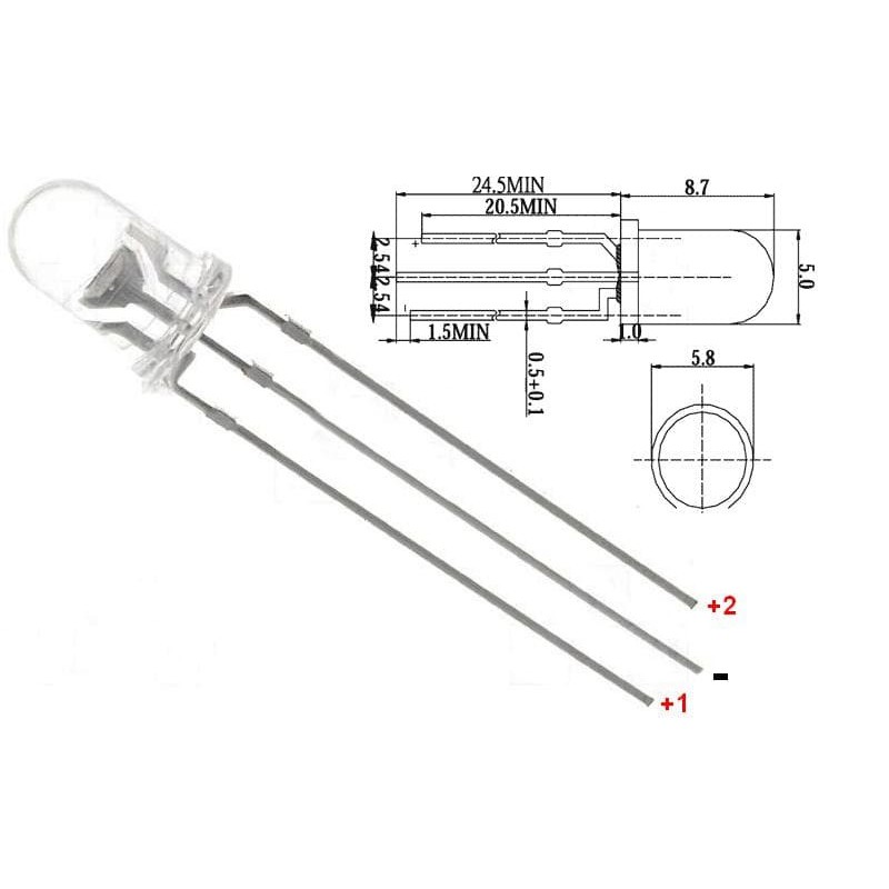 MERAH LED BICOLOR 5mm Diffused RED BLUE Common Anode 3pin 2 colors RED BLUE