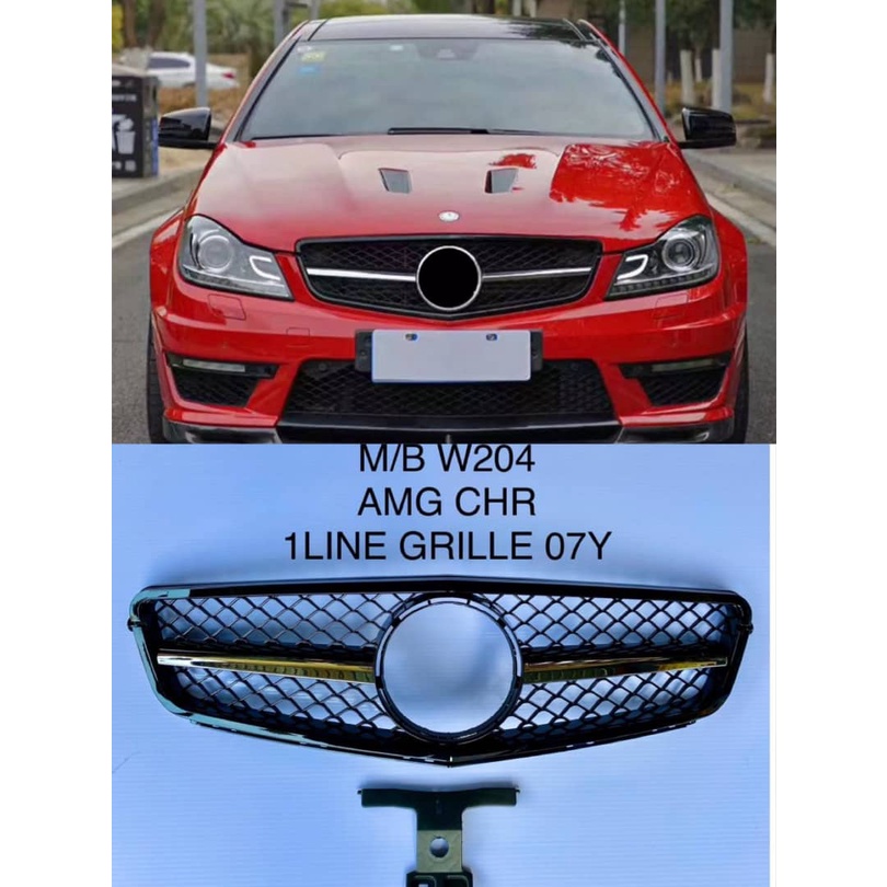 MERCEDES W204 C250 AMG HALF CHROME 1 LINE BLACK GRILLE WITH LOGO