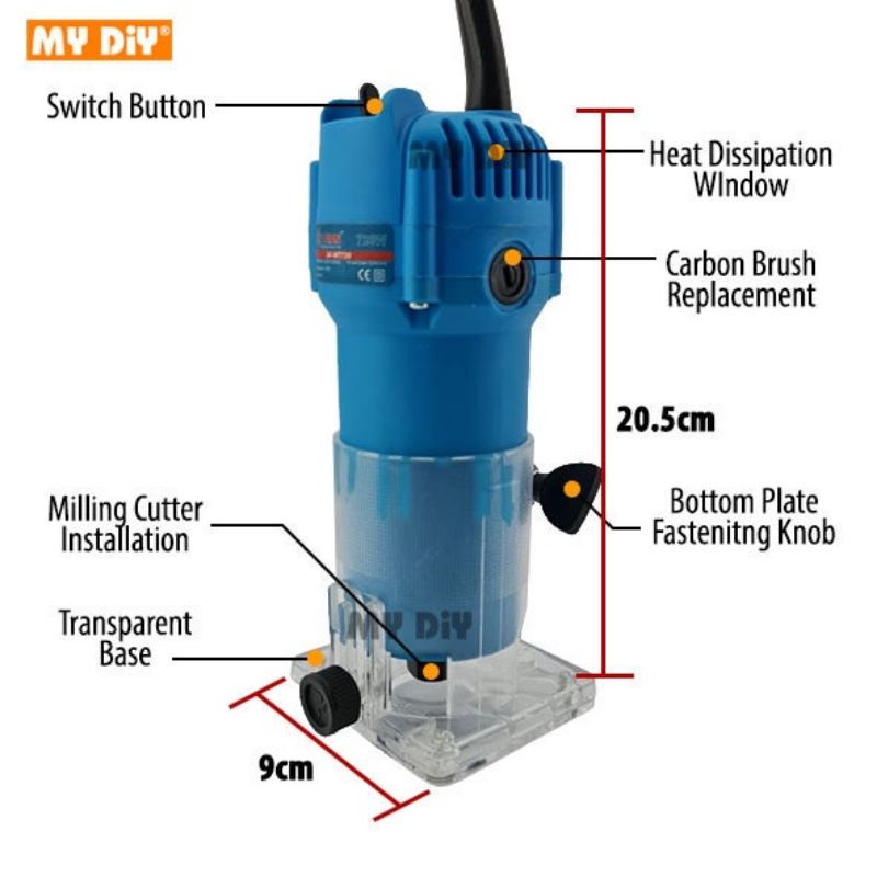 MESIN KEMASAN KAYU MESIN RATAKAN KAYU MESIN POTONG BUCU EXTRAMAN 720W Wood Trimmer Router Machine Electric Hand Trimmer