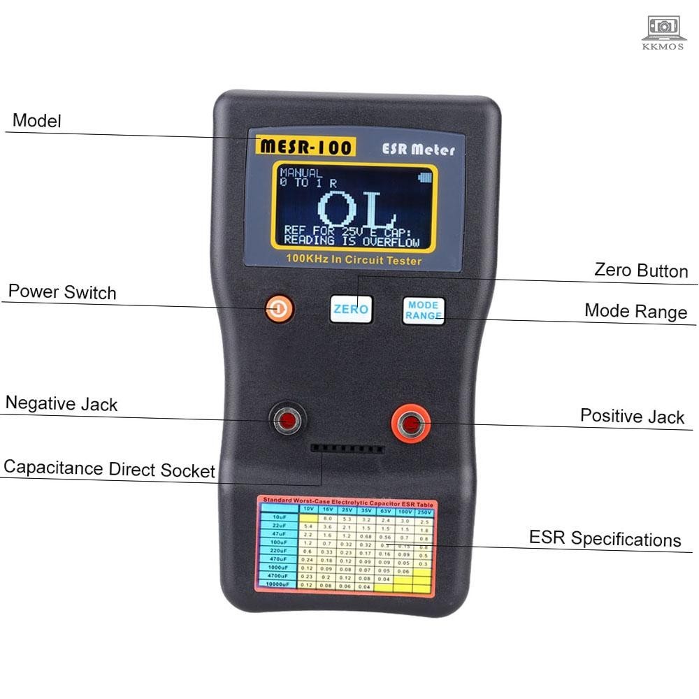 MESR-100 ESR Capacitor Tester Ohm Meter Professional Measuring Internal Resistance of Capacitor Capacitance Circuit Tester Capacitor Meter with SMD Test Clip Capacitance tester Tolomall