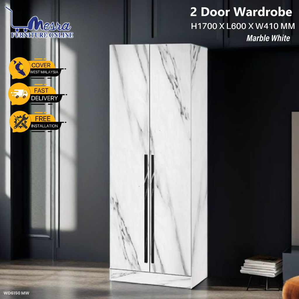 MESRA - 2 Door Wardrobe /Almari Baju 2 pintu / Almari Pakaian / almari murah / ikea almari / wardrobe / wardrobe marble