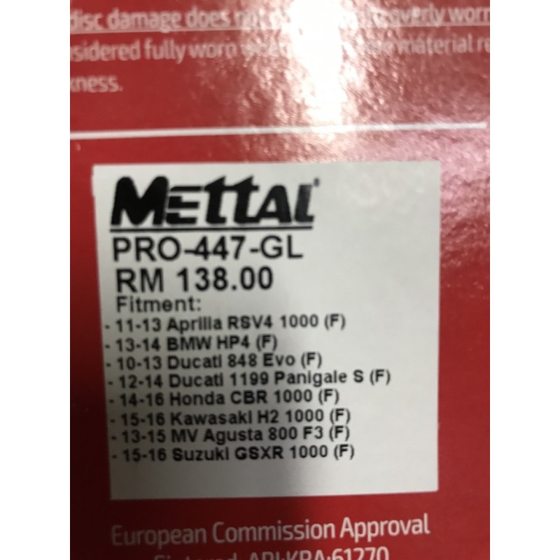 METTAL SINTERED PRO-447 DISC PAD FOR GP4/M3/M4/M5/BMW/AGUSTA/APIRIAL/DUCATI/kawasaki/HONDA