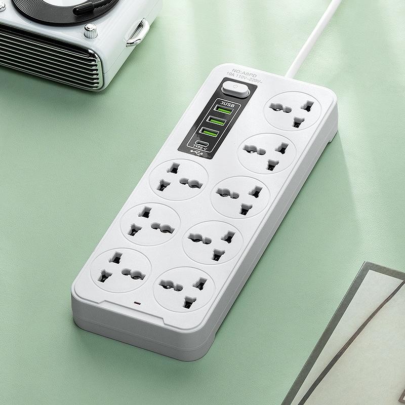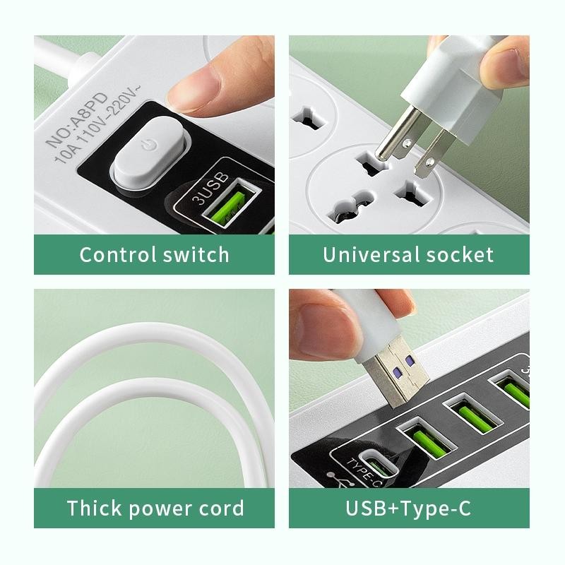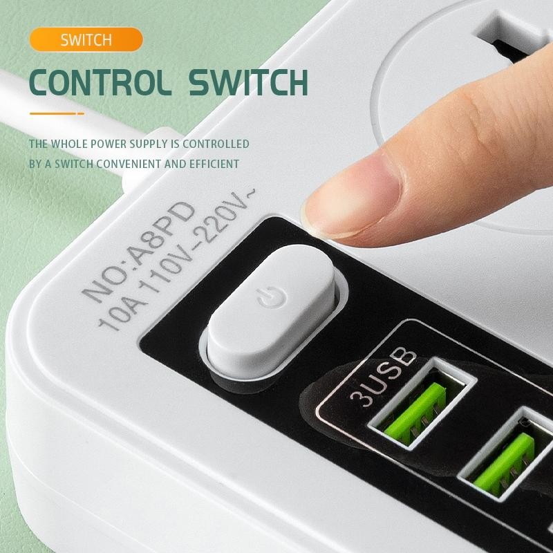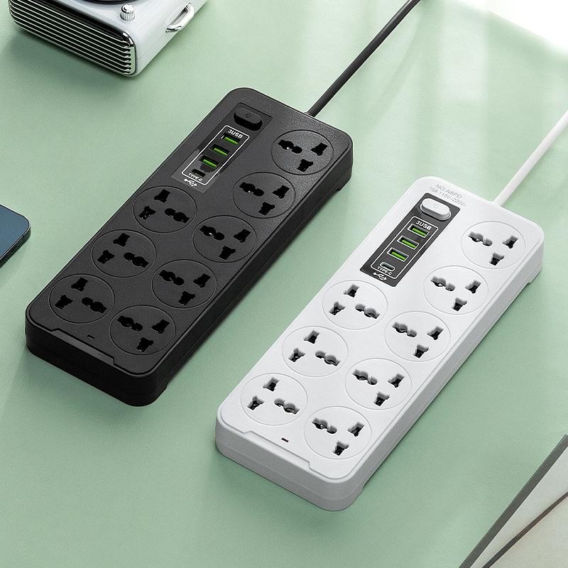 MGALL Power Socket Extension Cord Type-C 3 USB Port Power Strip High Power Multi Switch Socket Cable