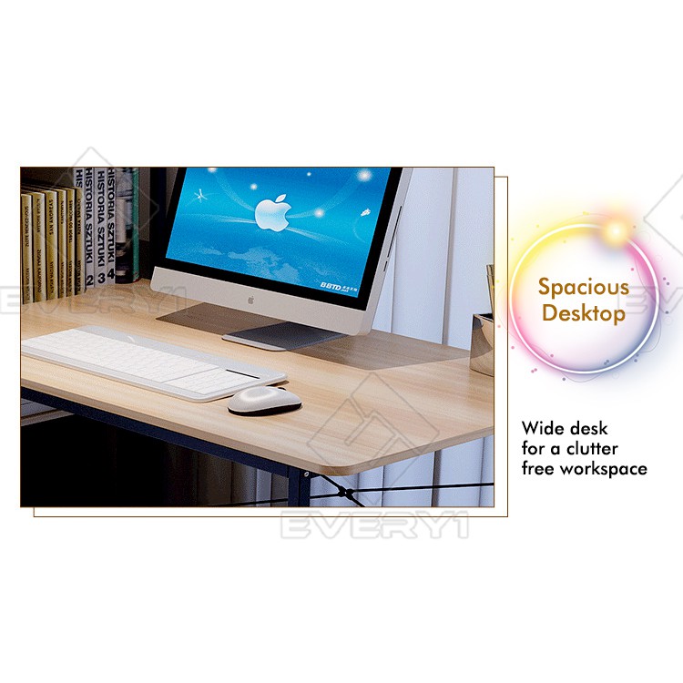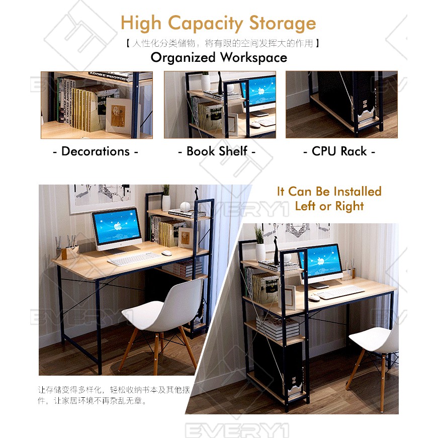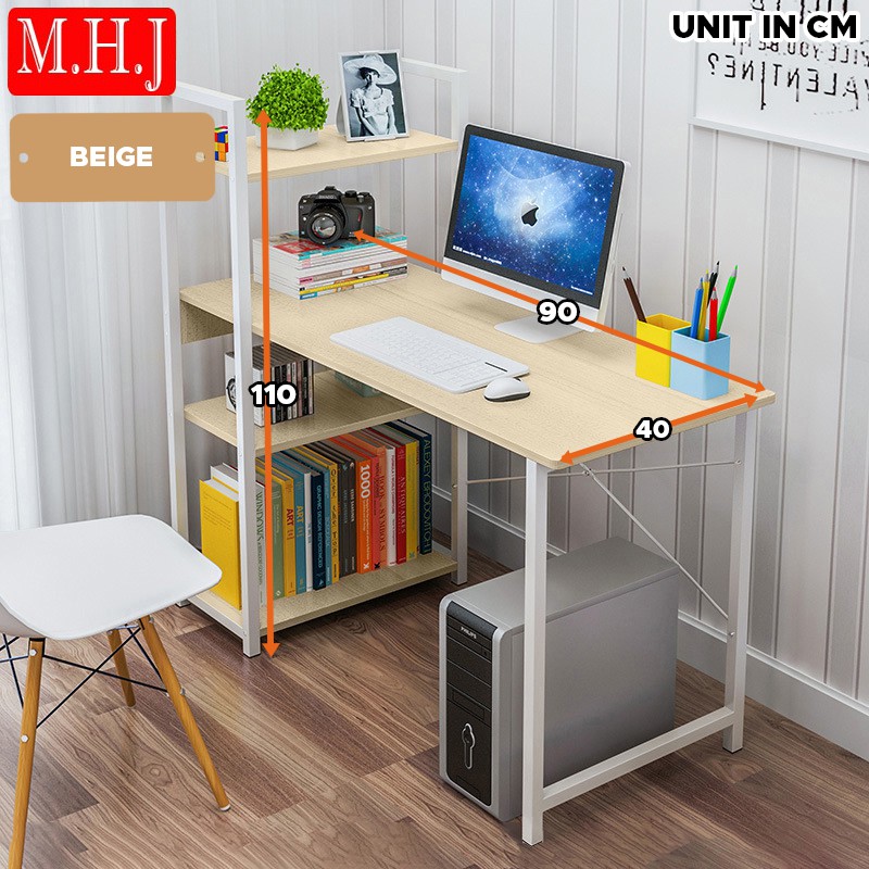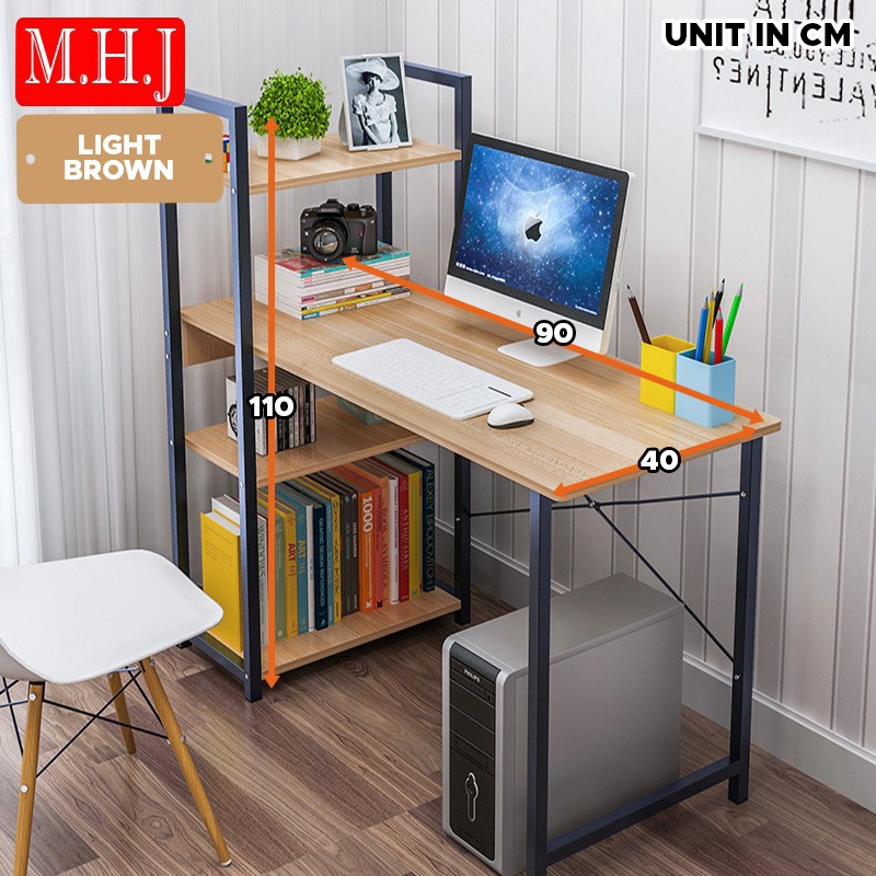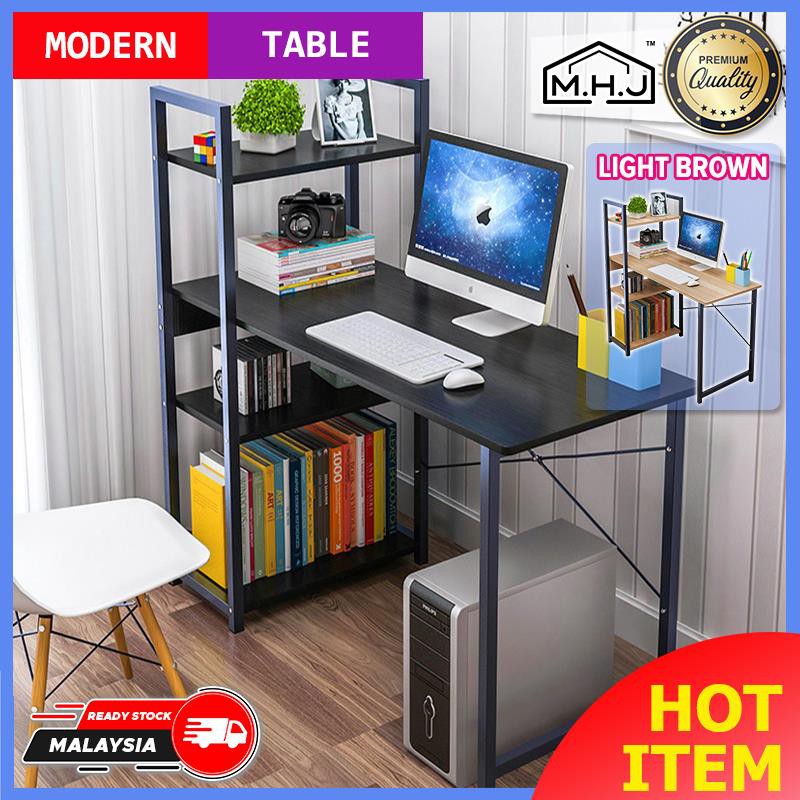 MHJ T90 Modern Computer Study Table With Side Bookshelves Multipurpose Shelf Table Home Office Desk Meja Belajar