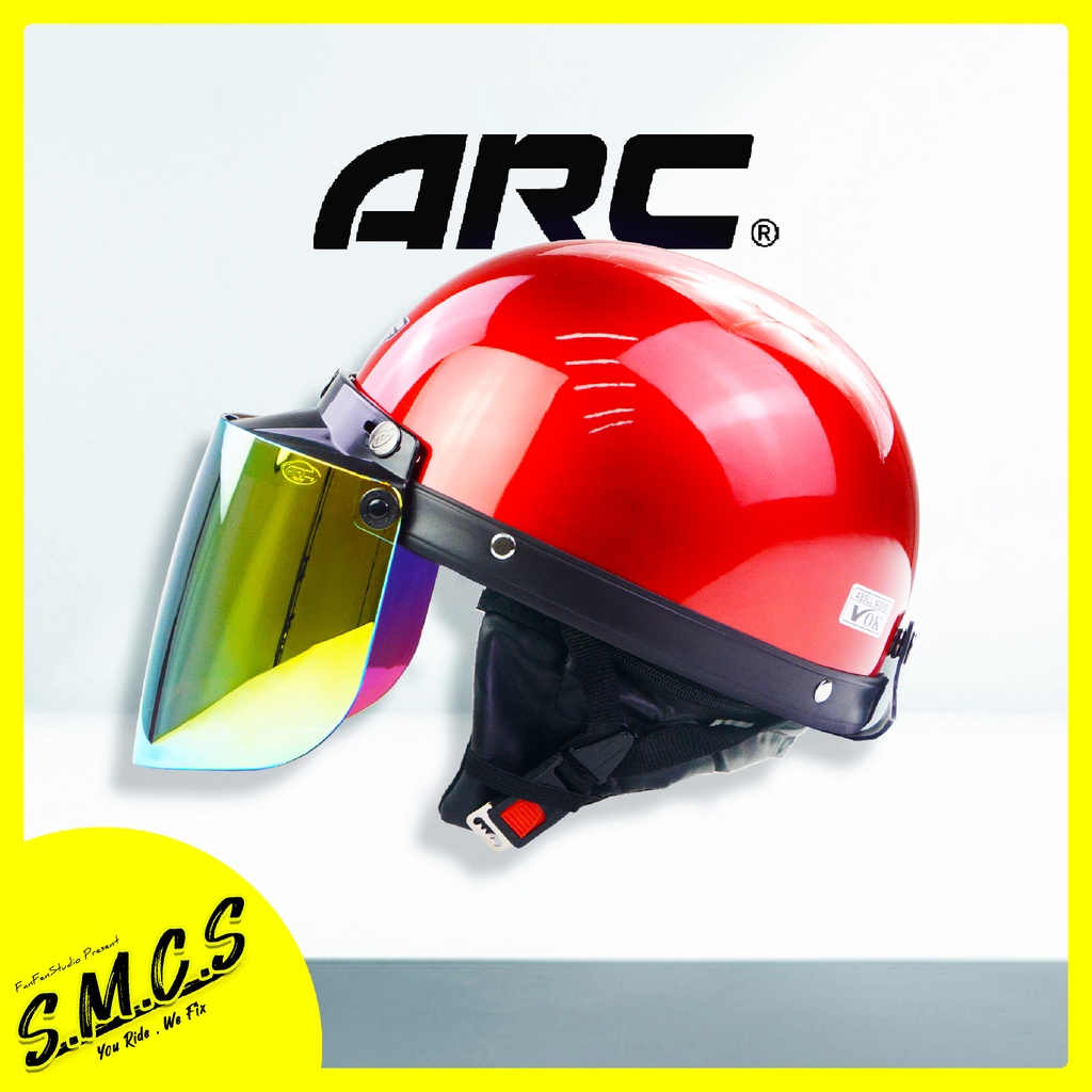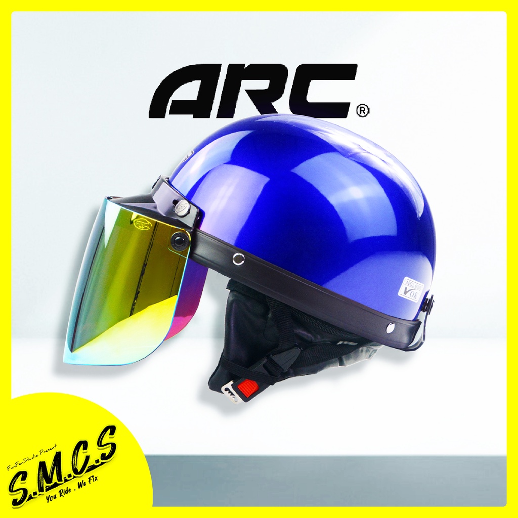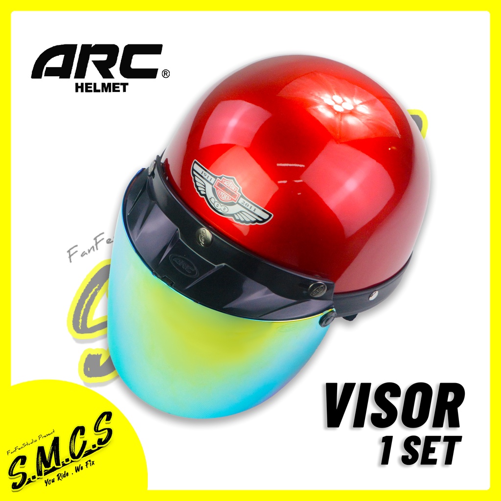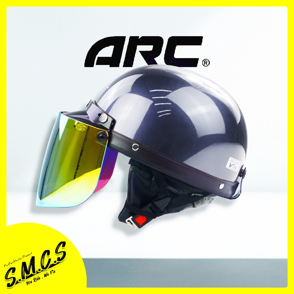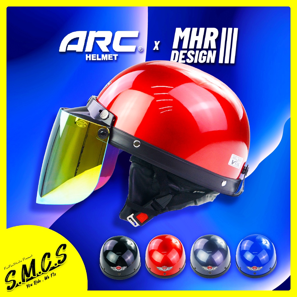 MHR III Helmet Siap ARC Gold Visor [BRV LOGO] Steng Kura Kura MHR Half Cut Helmet With ARC Visor
