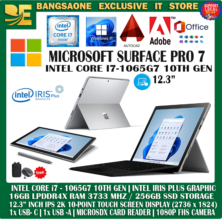 MICROSOFT SURFACE PRO 7+ -INTEL CORE I7-1165G7 11TH GEN / 16GB LPDDR4X RAM / 256GB SSD] WITH KEYBOARD & STYLUS PEN/WIN11