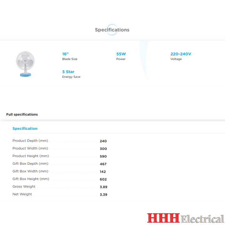 MIDEA 16" TABLE FAN MF-16FT15 / KHIND TABLE FAN (16 INCH) TF166