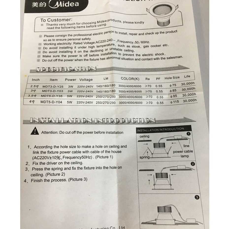 MIDEA 4"Inch 5w/9W LED Downlight (Daylight)