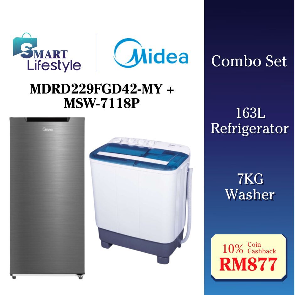 【COMBO】Midea Refrigerator (163L) MDRD229FGD42-MY +Washer (7KG) MSW-7118P / Morgan (191L) MRF-M7201SD + (7KG) MWM-B1370SA