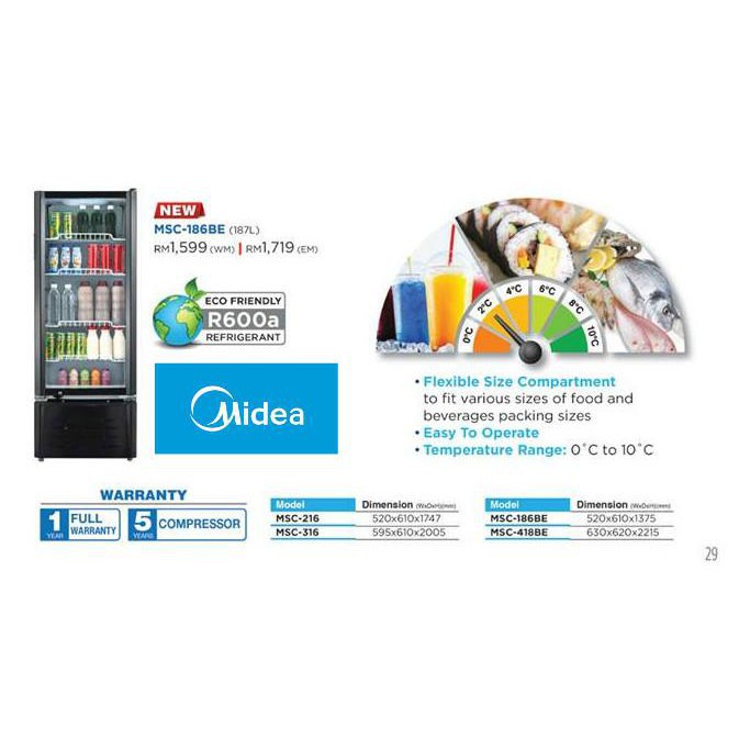 MIDEA SHOWCASE CHILLER 186L MSC-186BE (BLACK COLOUR GLASS)/MORGAN MCS-198 170L/DAEMA CHILLER (230LITER)