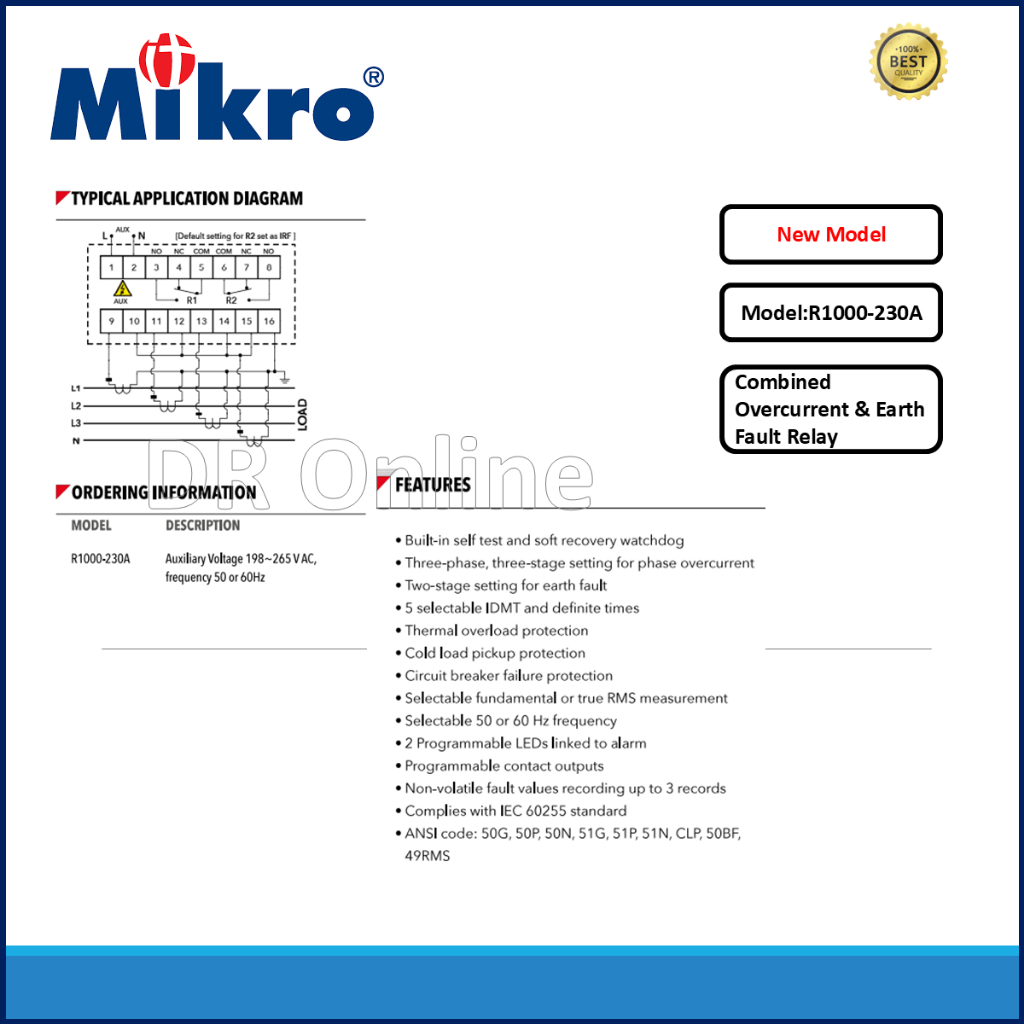 MIKRO COMBINED OVERCURRENT& EARTH FAULT RELAY 240VAC NX1000A-240A (OLD ) R1000-A230 (NEW )