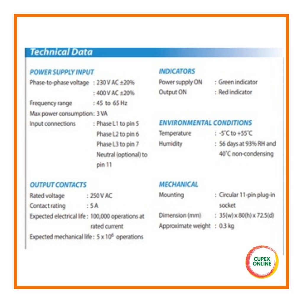 MIKRO MX50/MX100 Phase Failure & Sequence Monitoring Relay 400V (cupex)