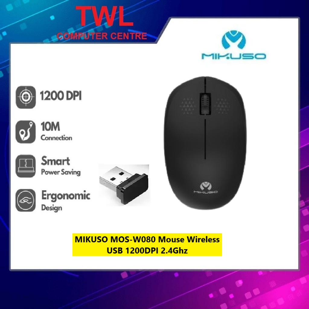 MIKUSO MOS-W080 Wireless Mouse USB|Battery (1Y Warranty)
