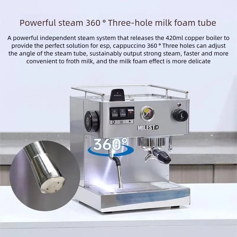 MILESTO EM19M2 Professional Coffee Machine Stainless Steel Semi-Auto Espresso Coffee Maker Machine with Copper Boiler
