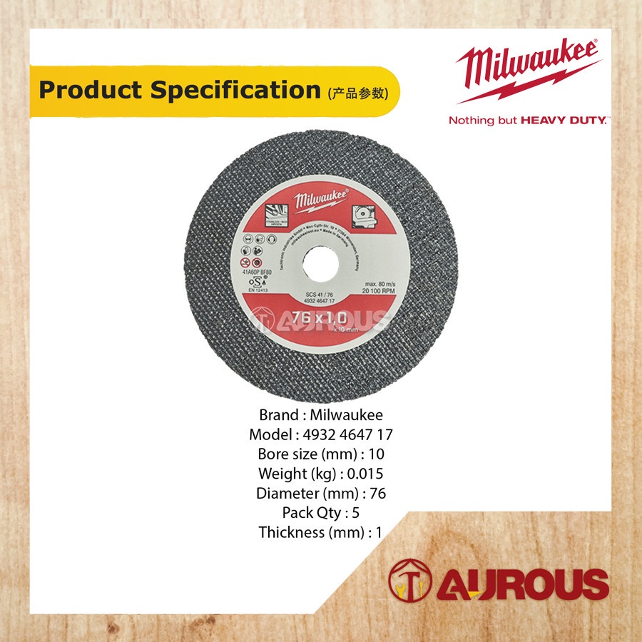 MILWAUKEE 3 INCH INOX METAL CUT OFF WHEEL FIBRE CUTTING DISC 76MM X 10MM (4932-4647-17) 5PCS/PACK