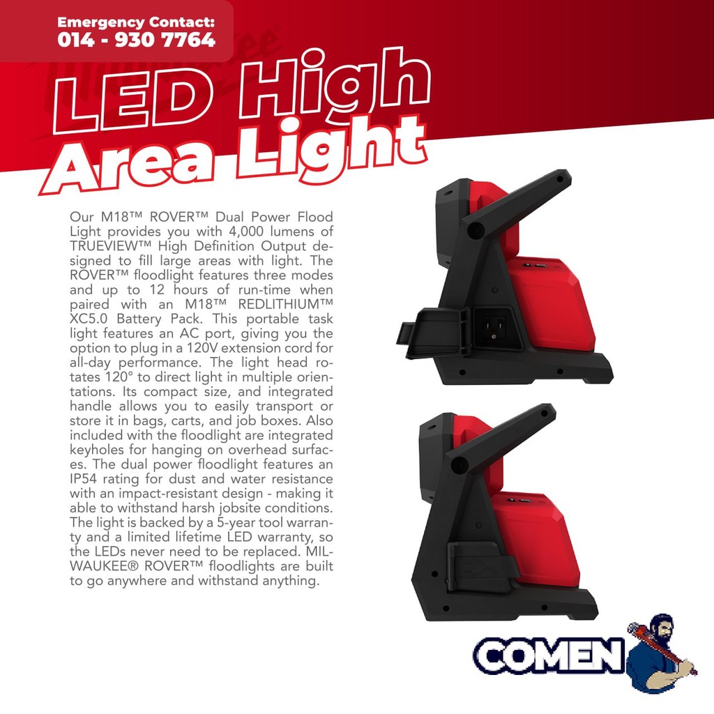 MILWAUKEE M18 LED High Performance Area Light M18 HOAL (Bare) 4000 Max Lumens Spotlight LED Work Light Outdoor