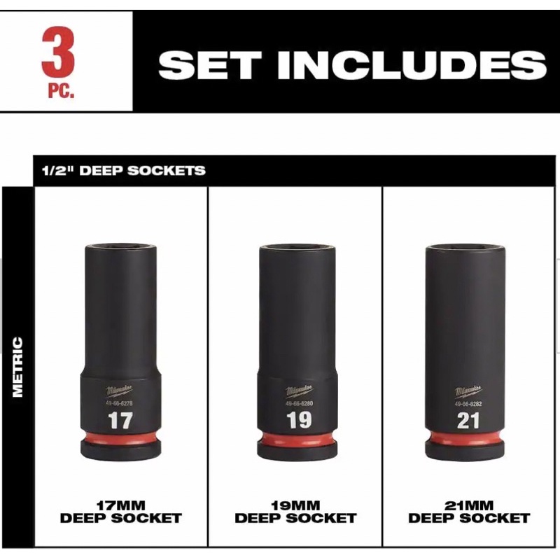 MILWAUKEE SHOCKWAVE Impact Duty 1/2 in. Drive Metric Deep Well Impact Socket Set (3-Piece)