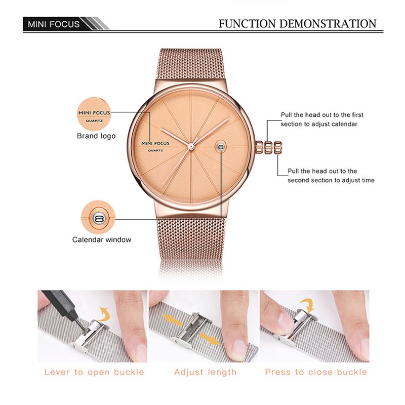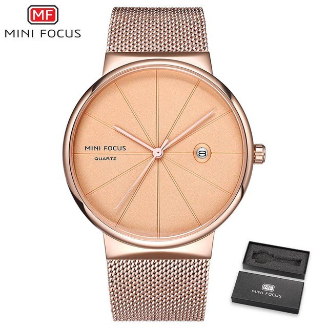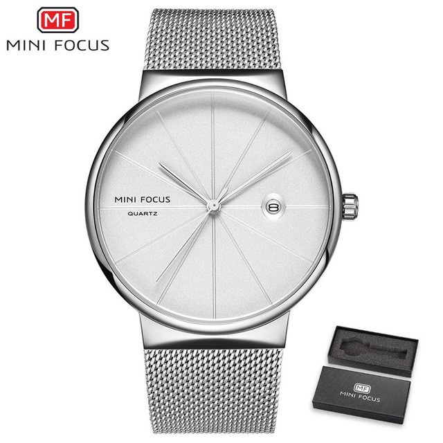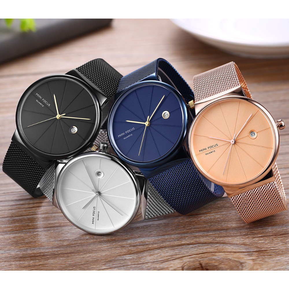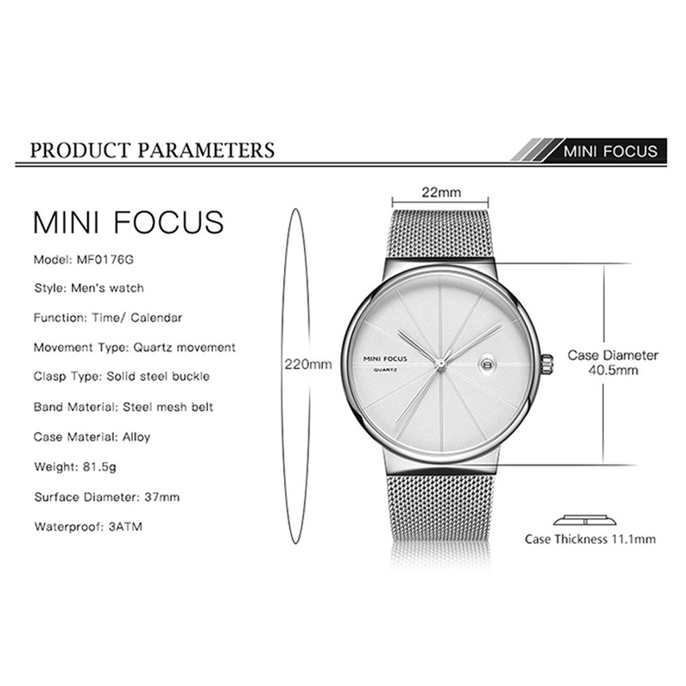 MINI FOCUS 0176 Men's Fashion Watch Simple Japanese Movement Calendar Waterproof Metal Mesh Belt Watches
