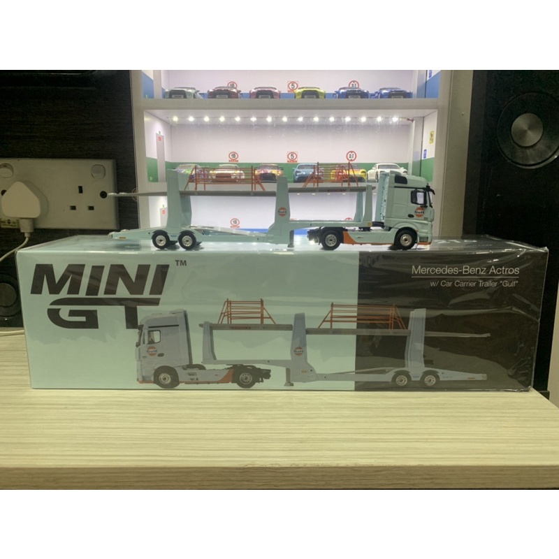 MINI GT No. 214 Mercedes-Benz Actros w/Car Carrier Trailer "Gulf"