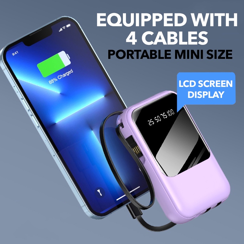 MINI Powerbank 20000mAh Built in 3 Cables Fast charging Digital LED Display Portable Power Bank for Mobile Phone USB C