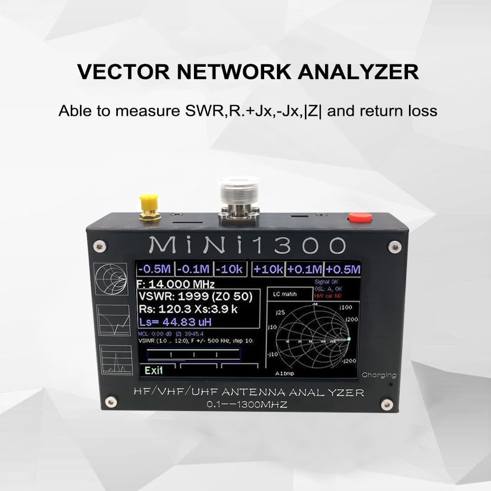 MINI1300 Antenna Analyzer 4.3in TFT LCD0.1-1300MHz HF/VHF/UHF ANT SWR Antenna Analyzer Meter