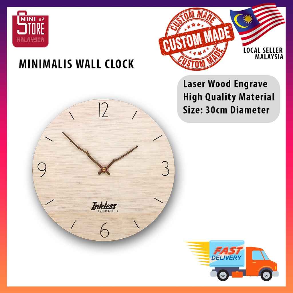 MINIMALIS DECORATIVE RUSTIC 02 WOODEN WALL CLOCK | JAM DINDING KAYU MINIMALIS | CUSTOM LASER CUT/ENGRAVE