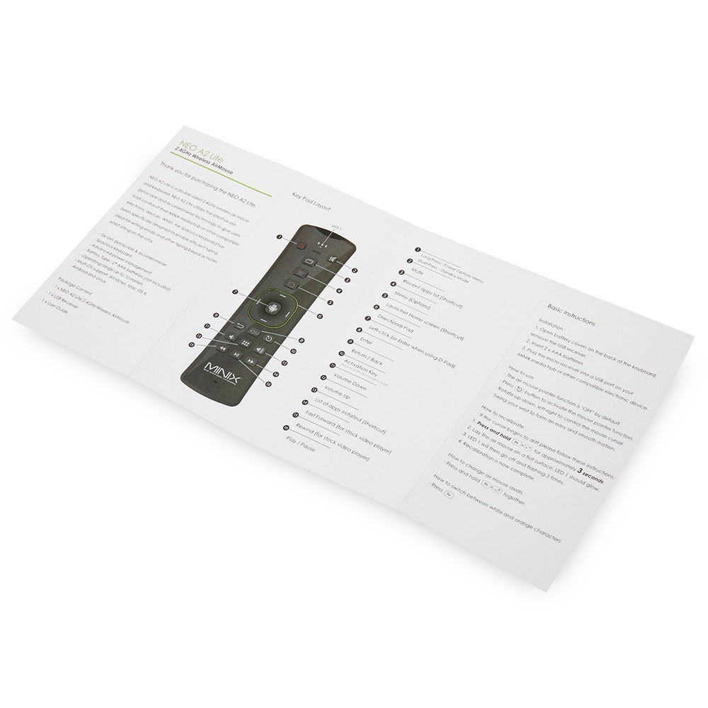 MINIX NEO A2 Lite 2 in 1 2.4G Wireless Air Mouse Smart TV Remote Control Keyboard Windows Android Mac OS X Linux