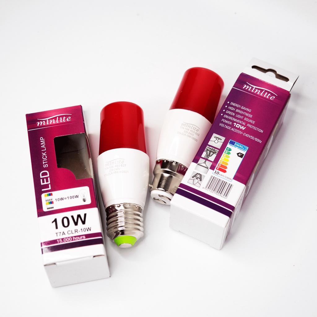 MINLITE LED Stick Lamp E27 B22 Base 10W RED LED Light Stick T7A CLR-10W