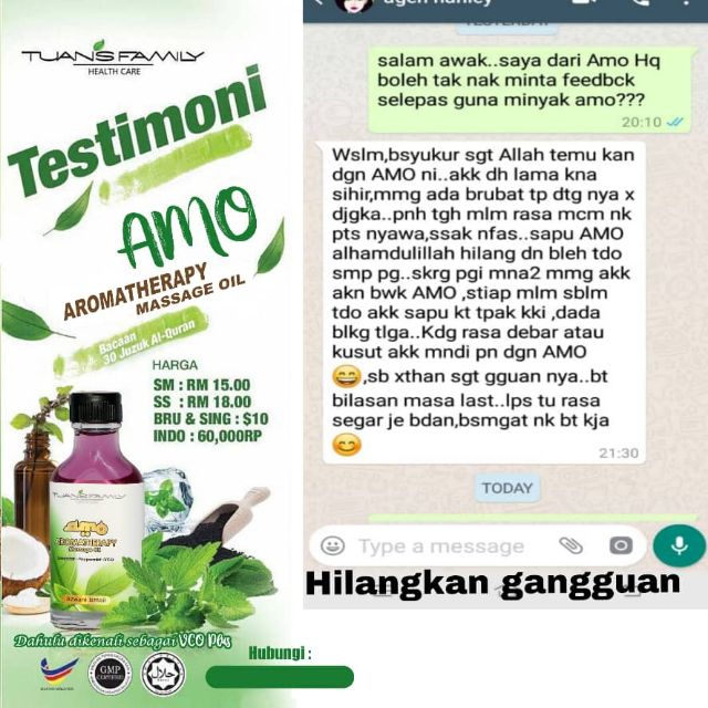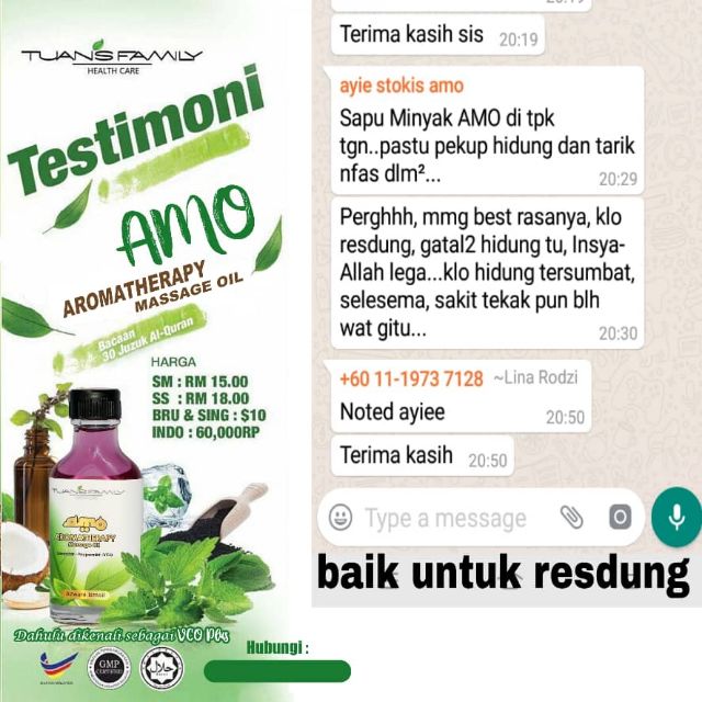 MINYAK AMO/ (AROMATERAPHY MASSAGE OIL)