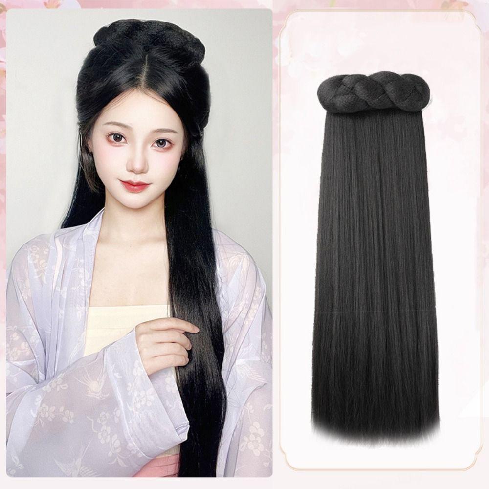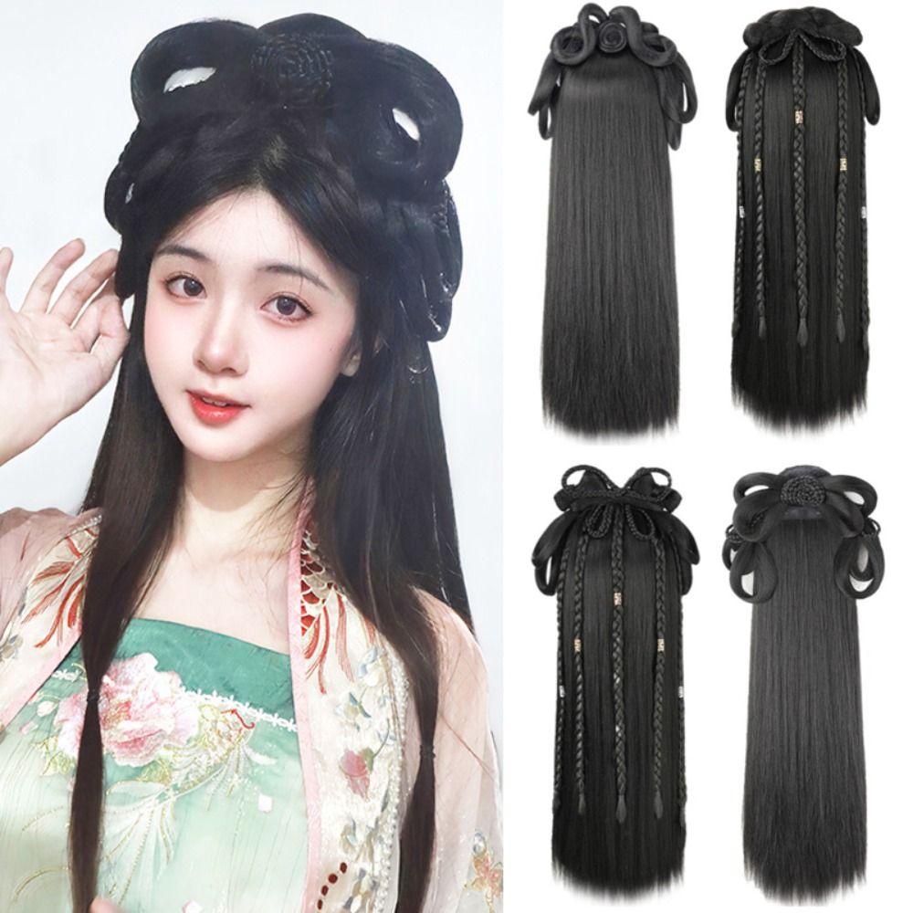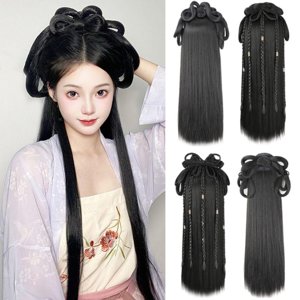 MIQUEL Chinese Ancient Wig, Synthetic Antique Women Hanfu Wigs, Dance Accessory Wigs Headdress Black Hairpiece Lazy Costume Wig