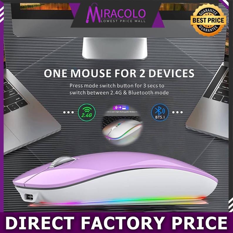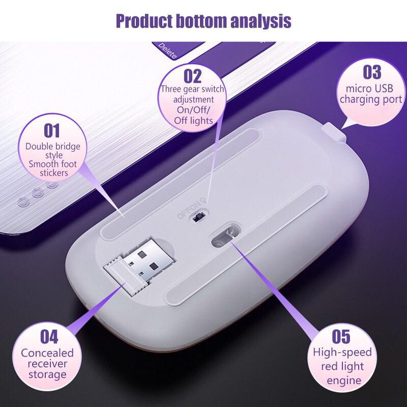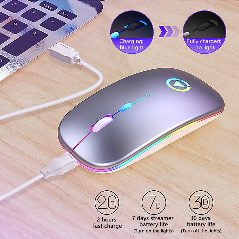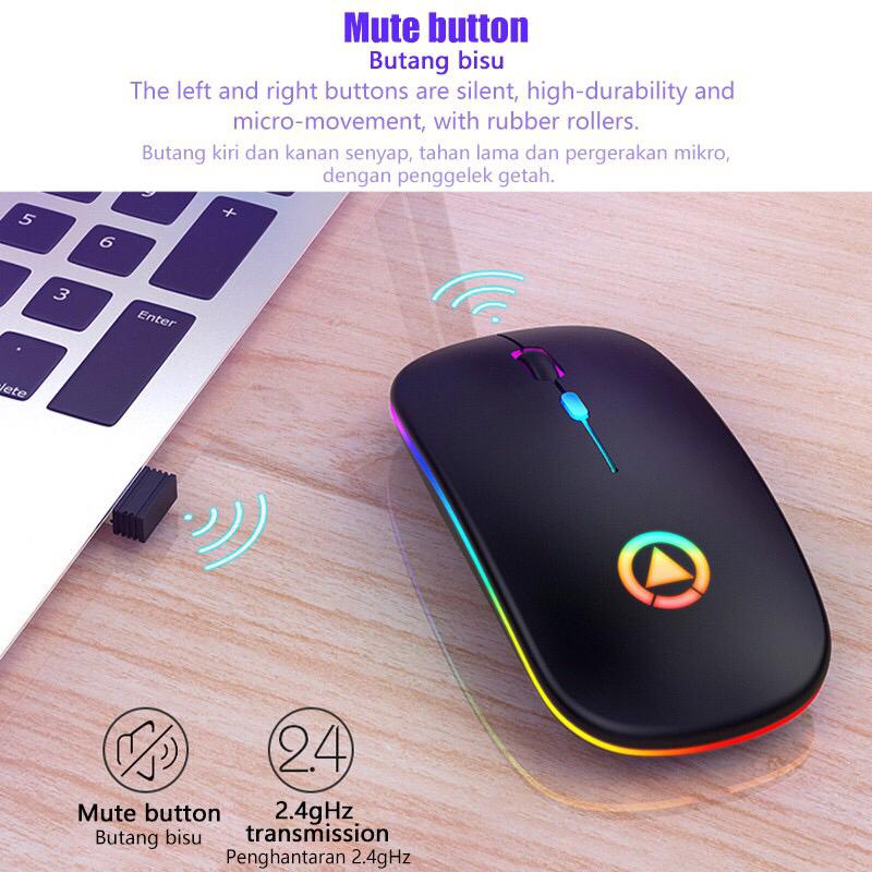 MIRA Wireless Mouse 2.4Ghz Receiver Optical Adjustable Silent LED USB RGB Rechargeable Mouse for Laptop Projector