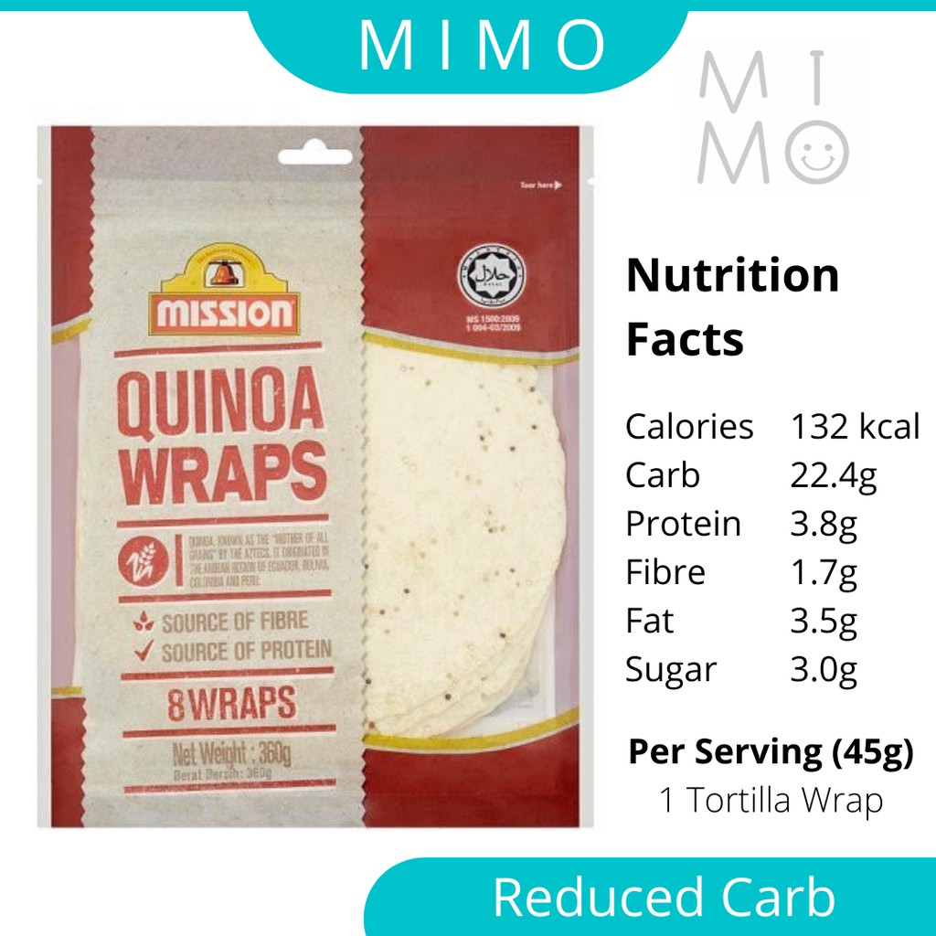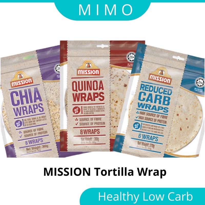 MISSION Tortilla Wrap Reduced Carb Wrap Chia Seed Quinoa Wholemeal High fibre Lower Carb Diet Keto Atkin Wrap Multigrain