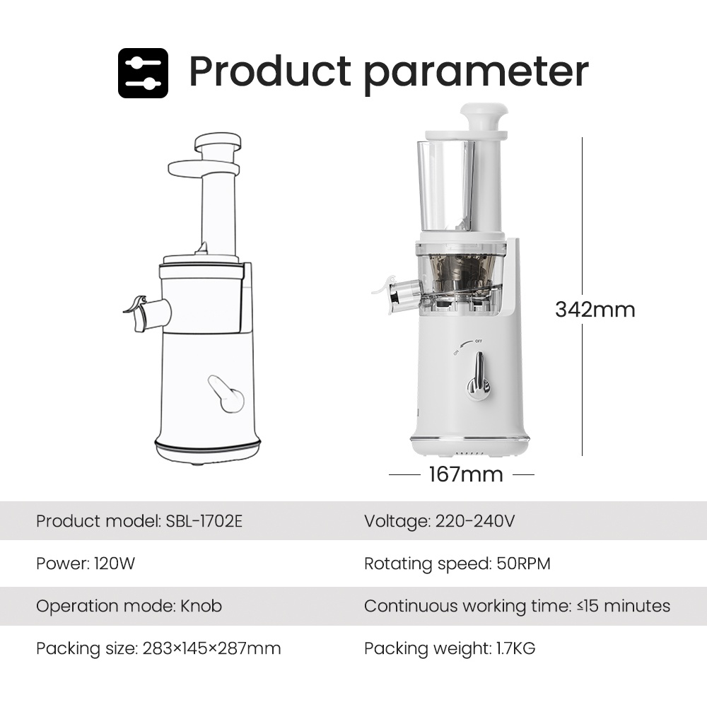 MIUI Mini Slow Juicer 1702E Portable Petit Fruit Extractor 50rpm Electric Fruit Juicers 120W Blender Mixer Slow Masticating Cold Press Juice Extractor Unique Filter Free Patented