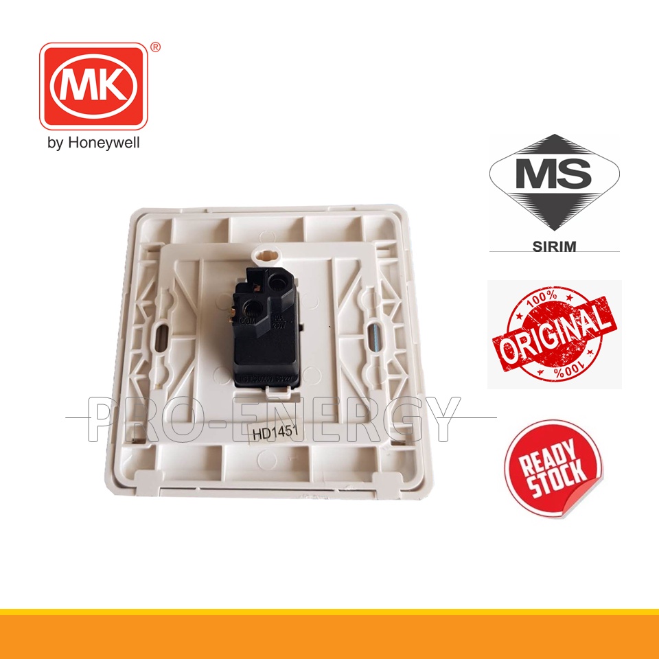 MK 1 Gang 1 Way 10A Wide Rocker Push Switch with Bell Symbol E4778B WHI