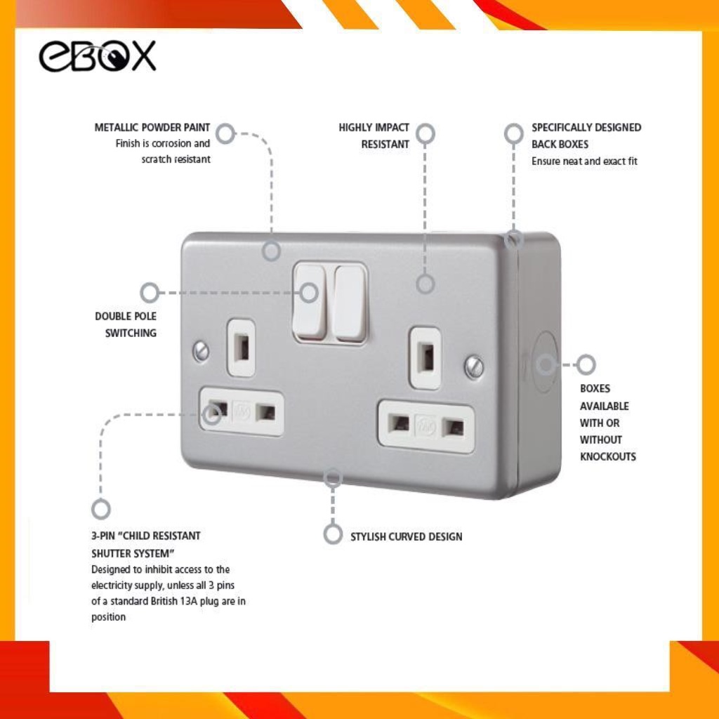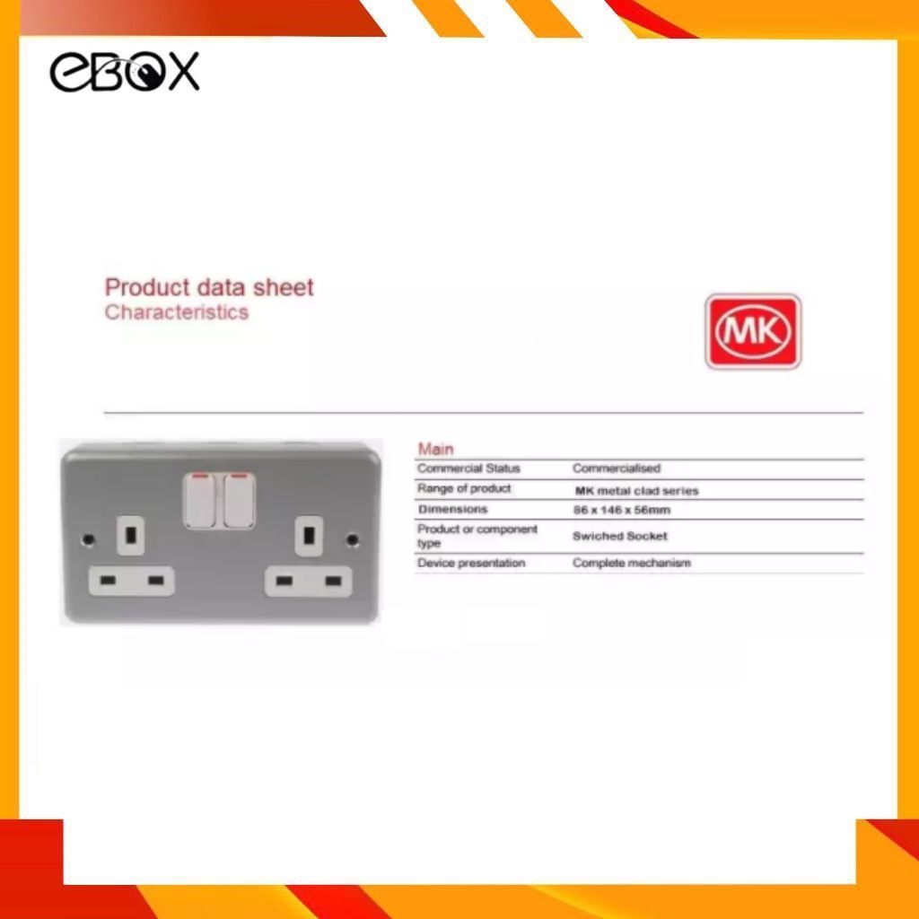 MK 2946 13AMP 3 Pin Double Gang Metal Clad Switch Socket Outlet