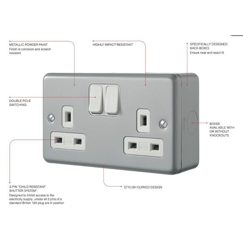 MK 2946 2GANG 3PIN 13A METAL CLAD SWITCH SOCKET