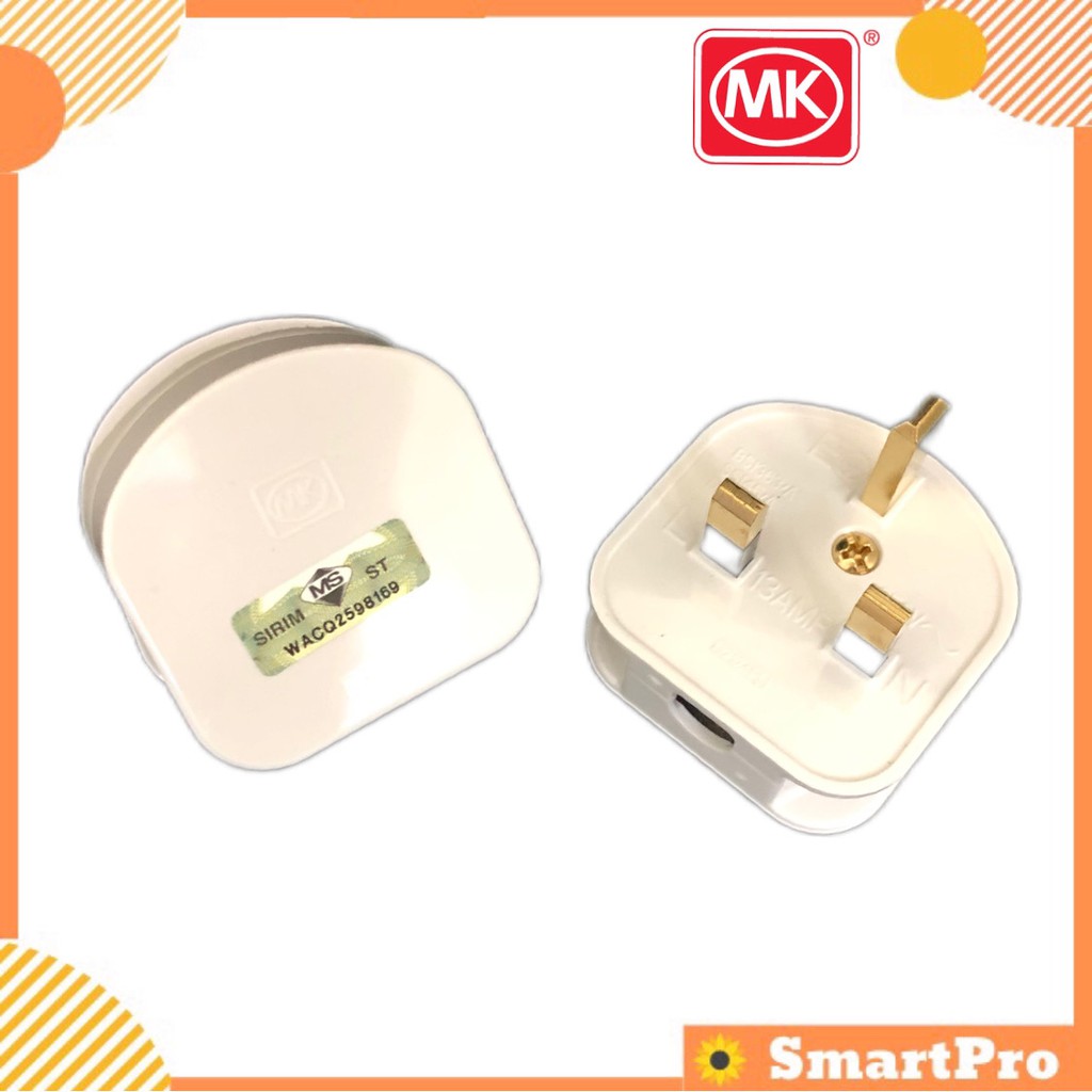 MK Heavy Duty Poly Carbonate 13A Fused 3 Pin Plug Top MK654 Uk Type 3 Pin Plug Top 13A Plug Top Sirim Approved