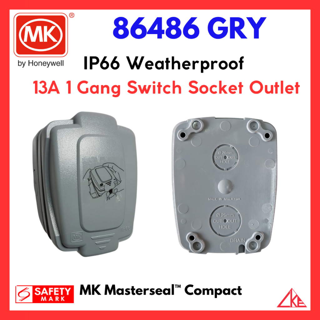 (SG Seller) MK 86486 GRY Masterseal Compact Weatherproof Switch Socket Outlet 13A IP66