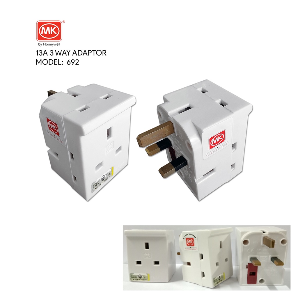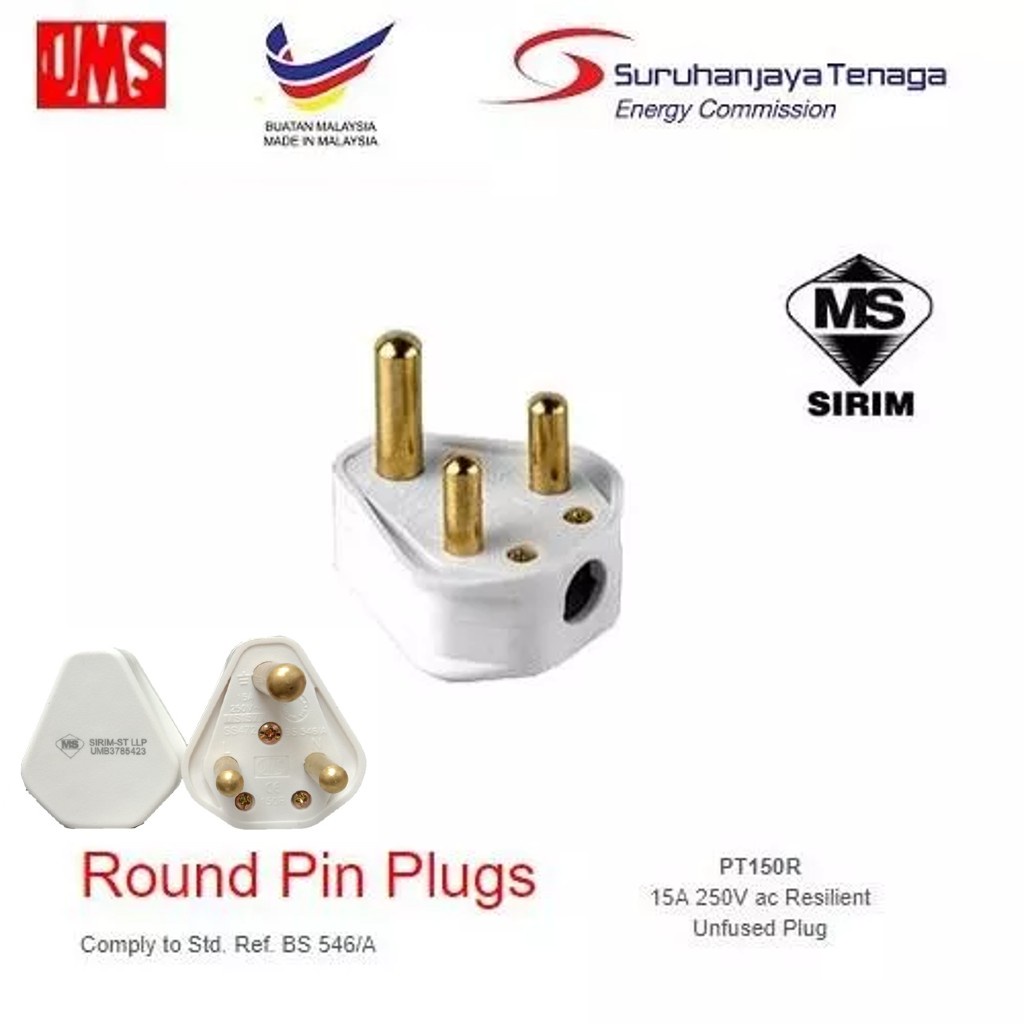 MK Plug Top 646 650 654 MK 3 Way Adaptor 692 MK Honeywell 13A UK 3-Pin / UMS PT150R 15A Round 3-Pin Plug Top [SJ MALL]