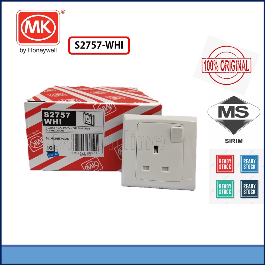 MK Switch Socket Pvc 13A 1Gang 1X13A ,S2757-WHI