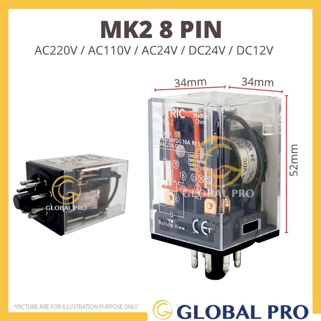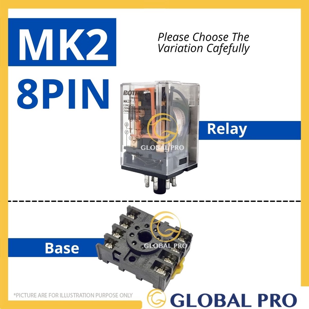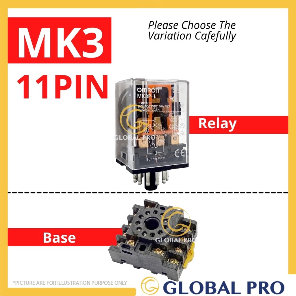 MK2 / MK3 Relay Base General Purpose Relay ( AC220V / AC110V / AC24V / DC24V / RELAY BASE)