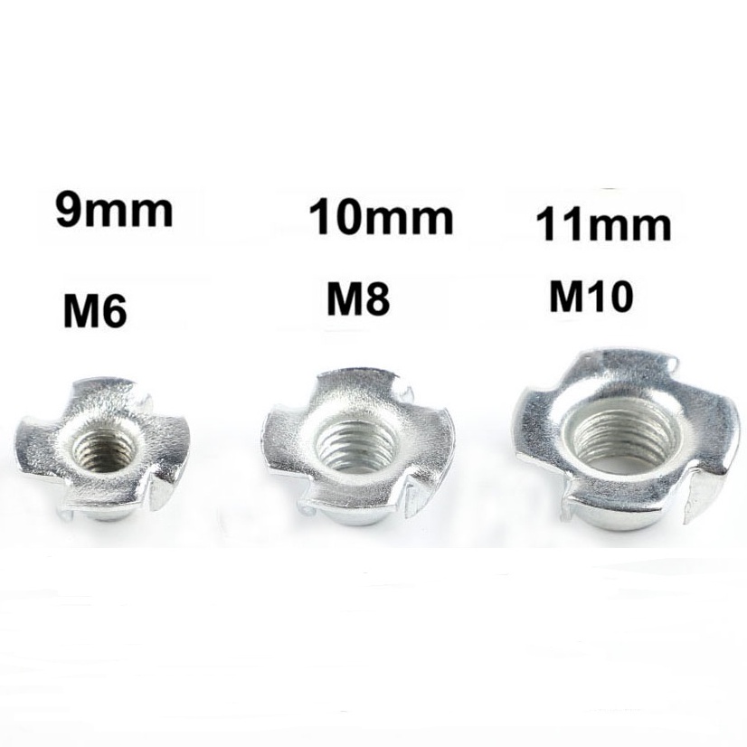 MKR 1pc M6 M8 M10 T-nut Four Jaw Claw Prong 4 Blind T Nut Tee Carbon Steel Furniture Hardware