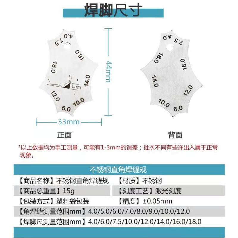 MKR Fillet Weld Welding Gauge Protractor Throat Depth Leg Length Ruler Two-piece Gauge