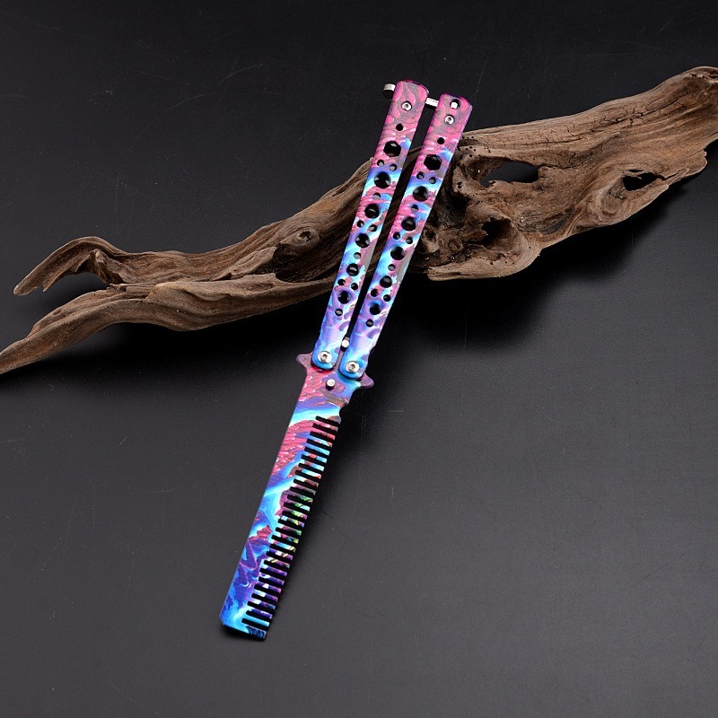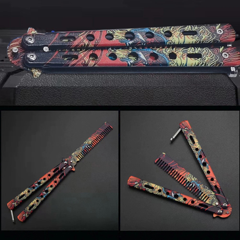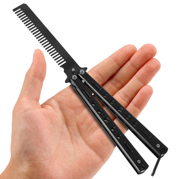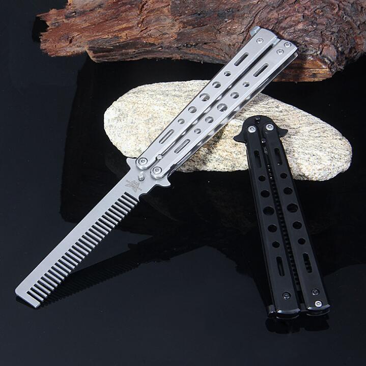 MKR Foldable Balisong Style Stainless Steel Butterfly Comb Training Barber Switch Comb Hair Pomade Styling Sikat Rambut