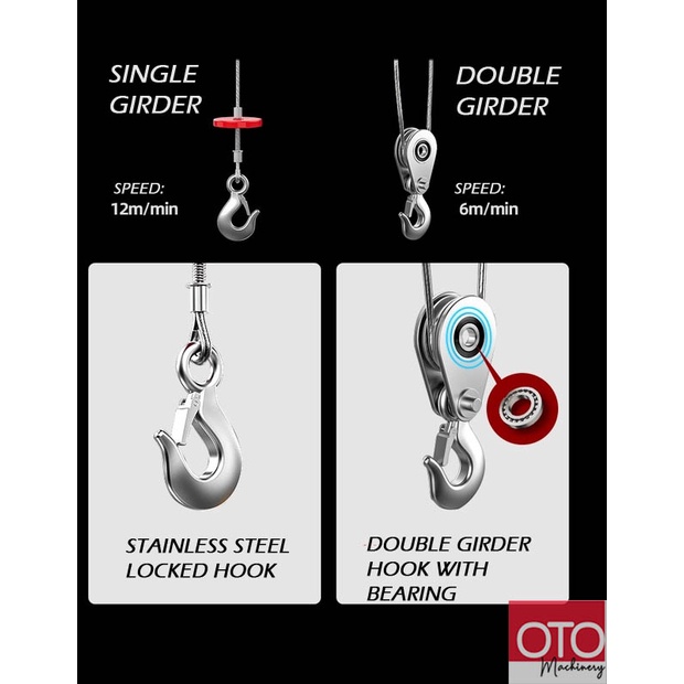 MOBILE HOIST CRANE MICRO ELECTRIC REMOTE CONTROL I BEAM RAIL RUNNING