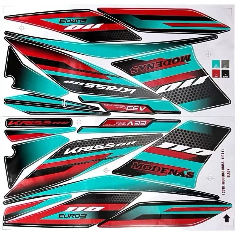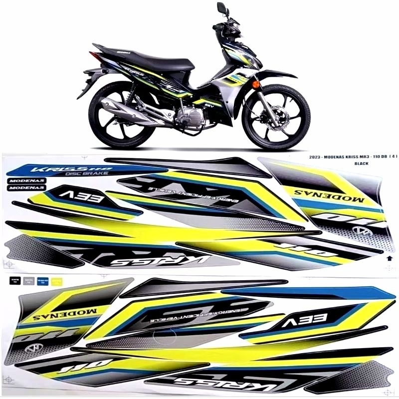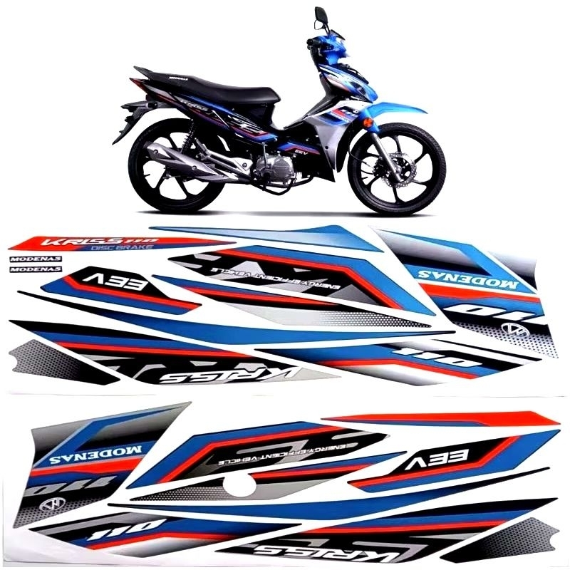 MODENAS KRISS MR3 EURO 3 BODY COVER STICKER STRIPE COVER SET (4) BLACK BLUE RED KRISS110 110 EURO3 2021 2022 2023 2025